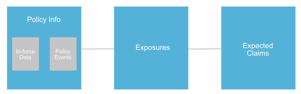 Expected claims information is volatile and should be kept separate from the exposures. There are also often numerous bases for different purposes, such as industry tables, industry tables with factors, and custom internal assumptions. These can also differ by event type, such as mortality, lapse, and exercise of other options.